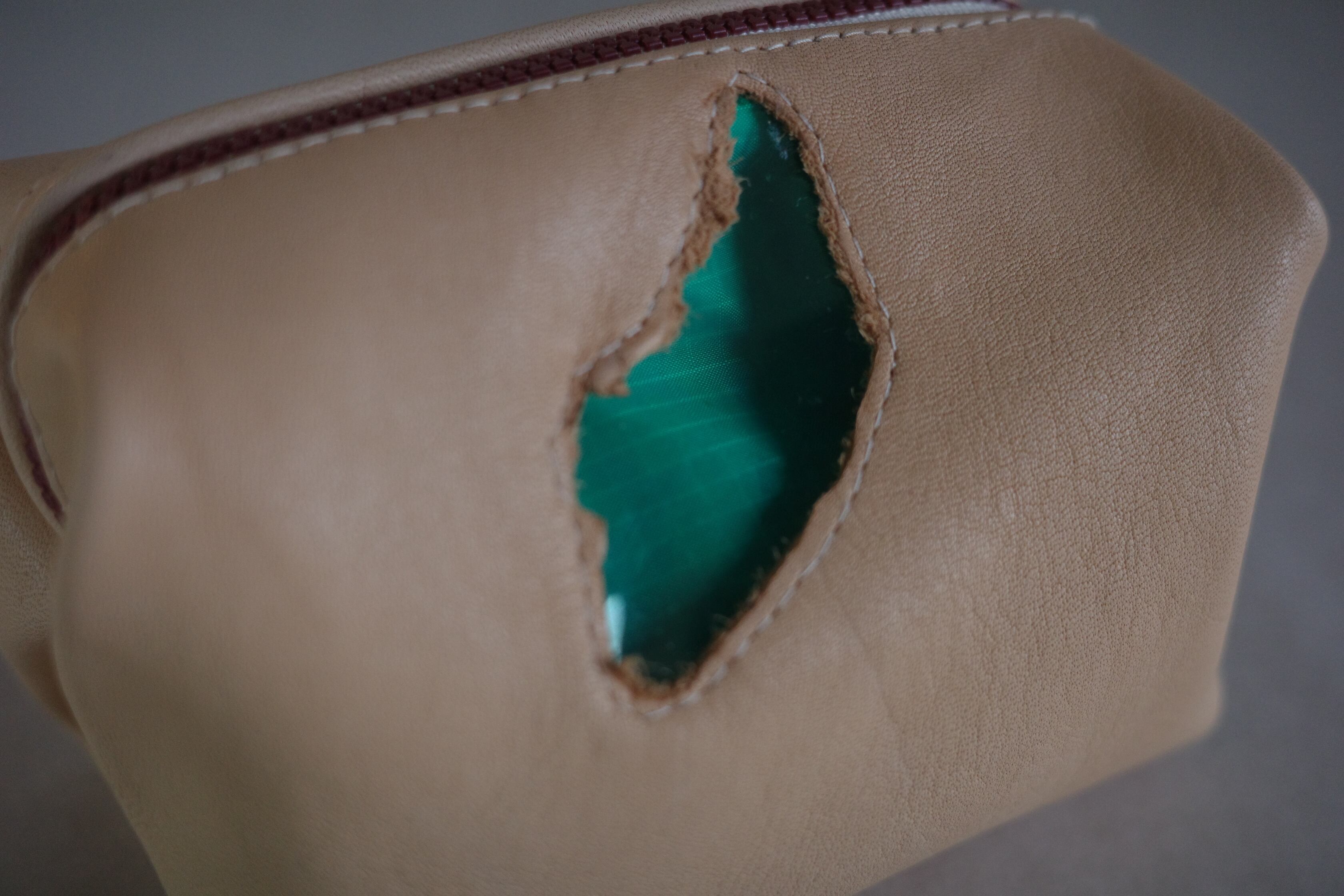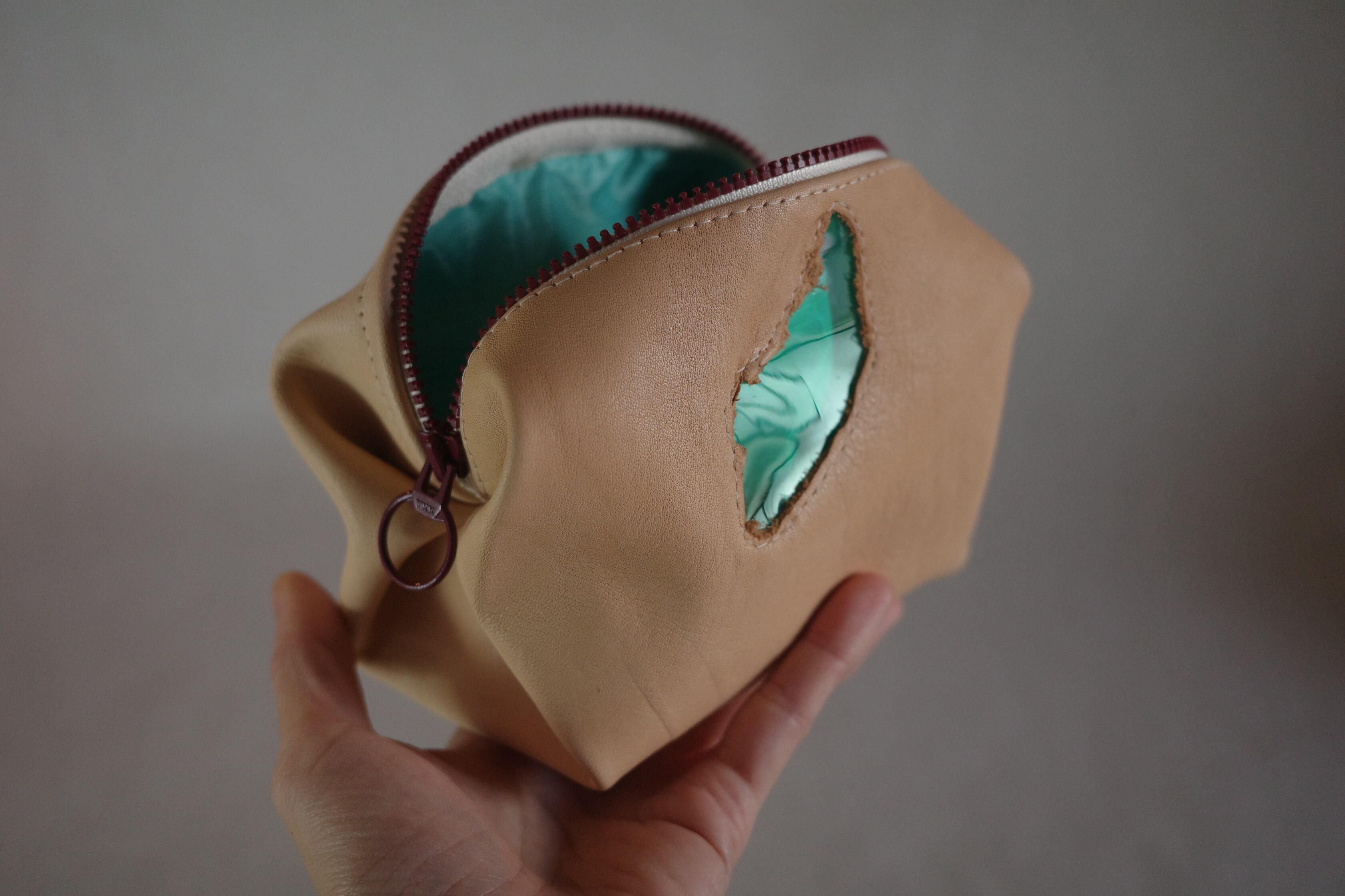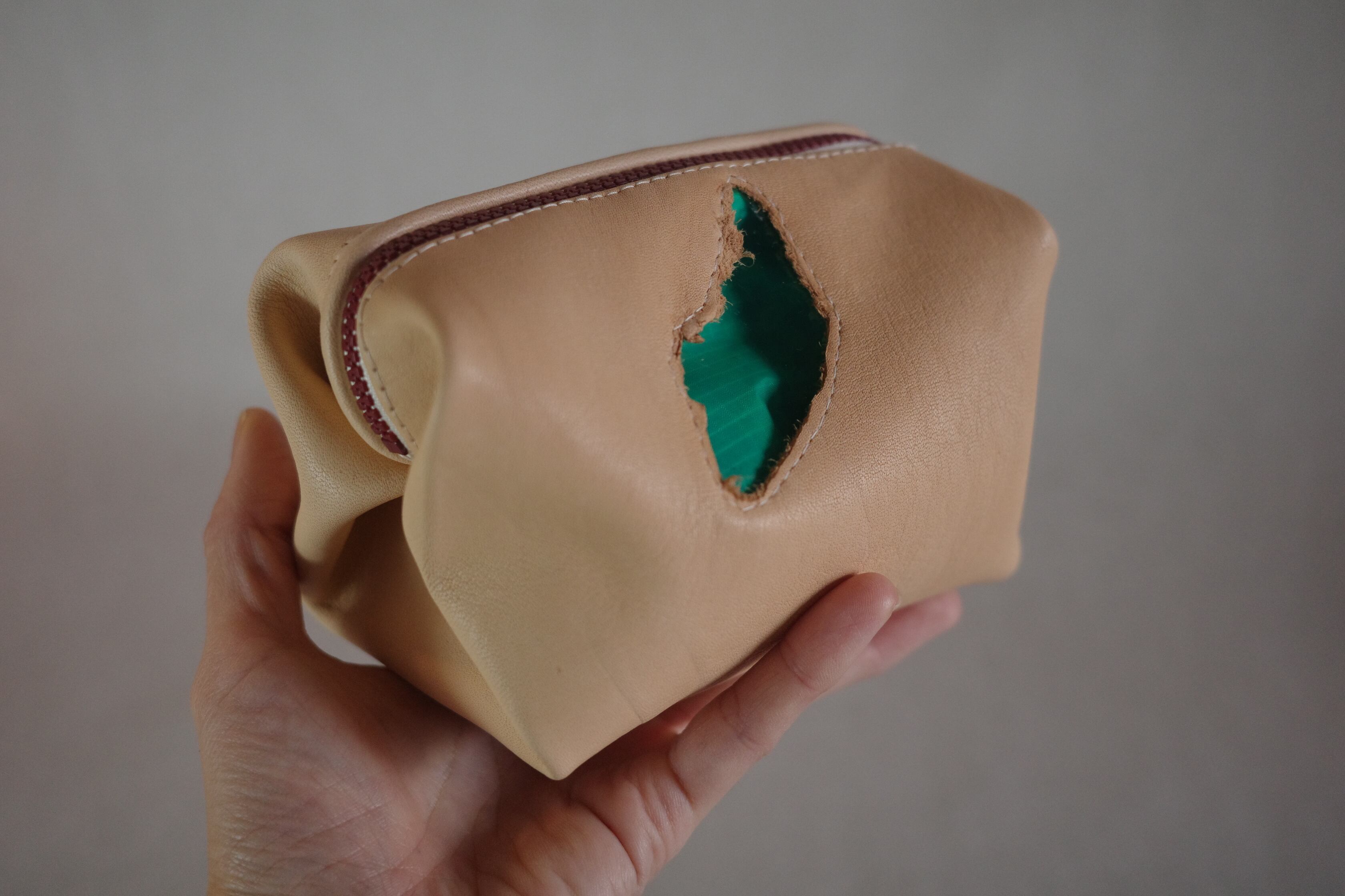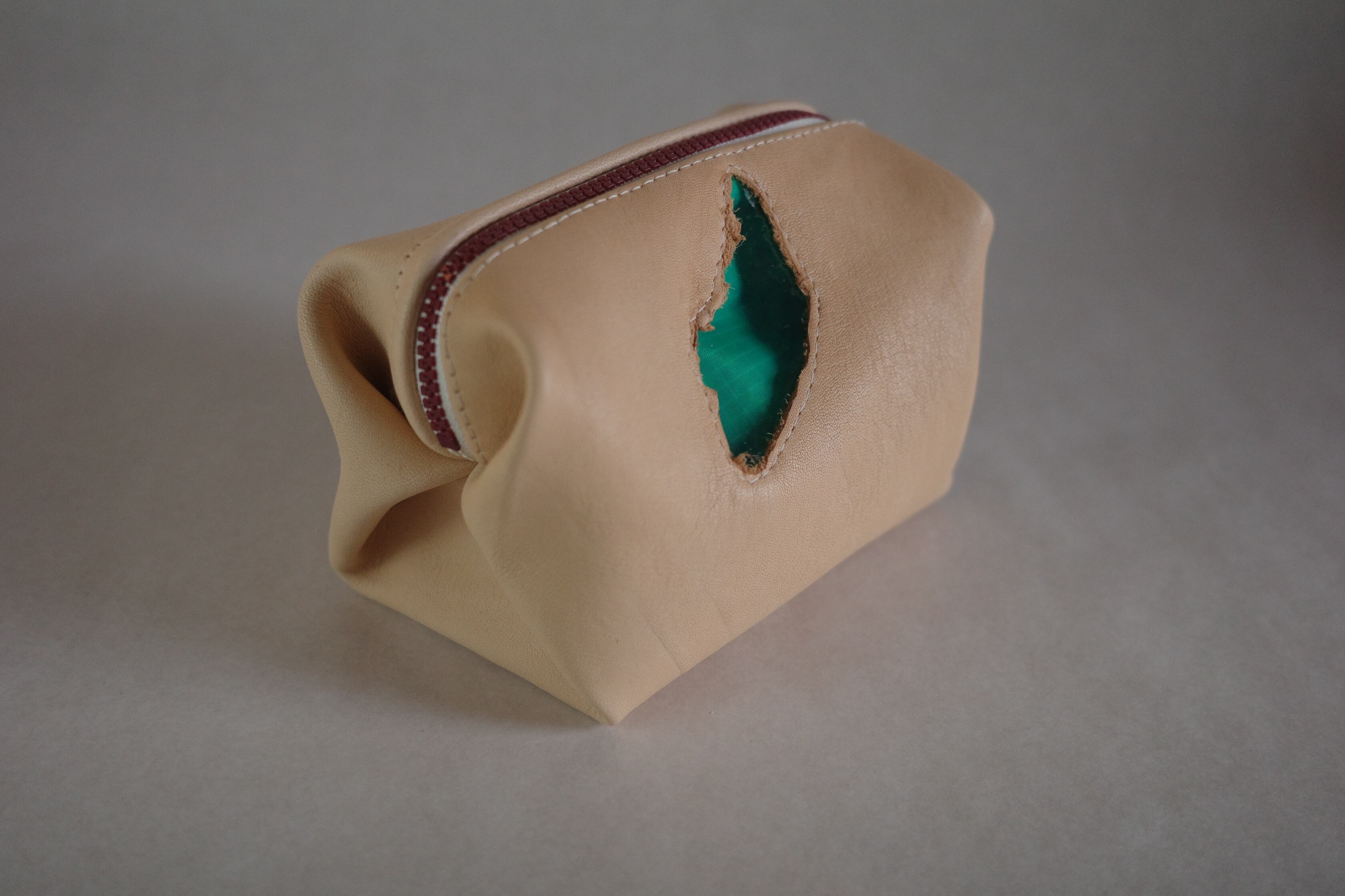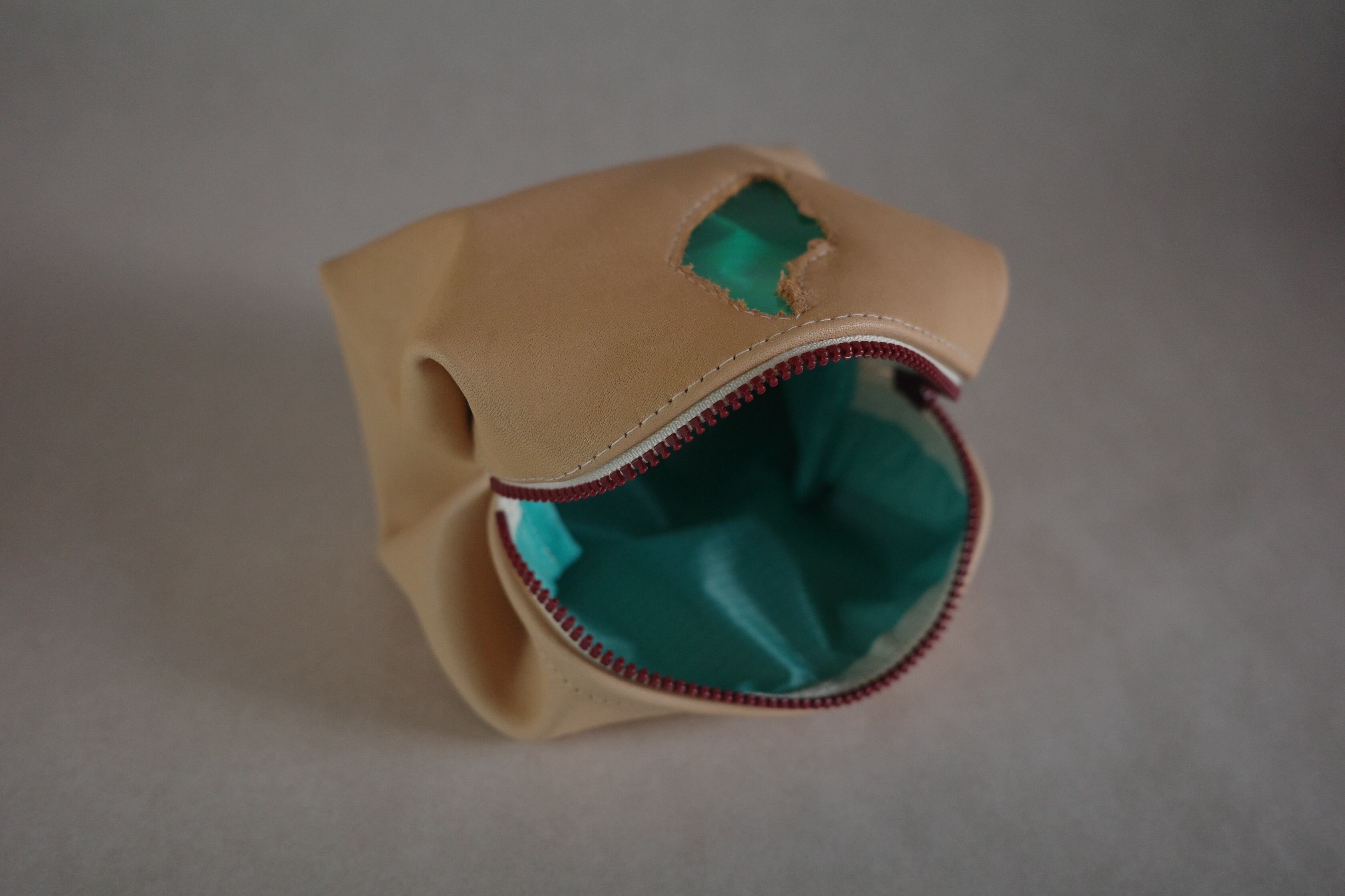 キャンディー包型のポーチを本革で作りました。