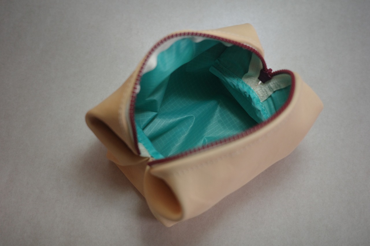 裏地にはブルーのナイロンを使用。明るい色なので、中身が見えやすいです。