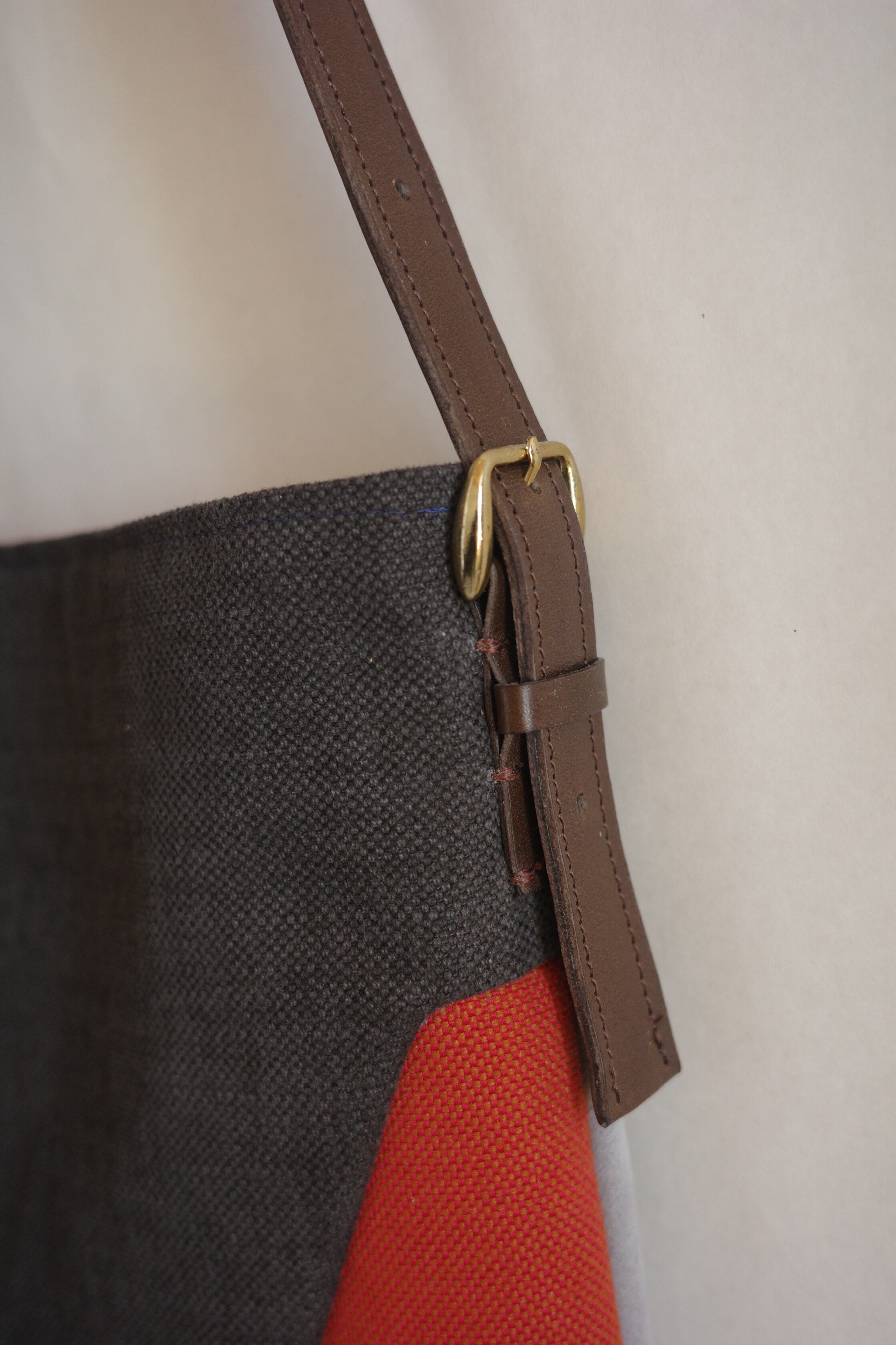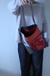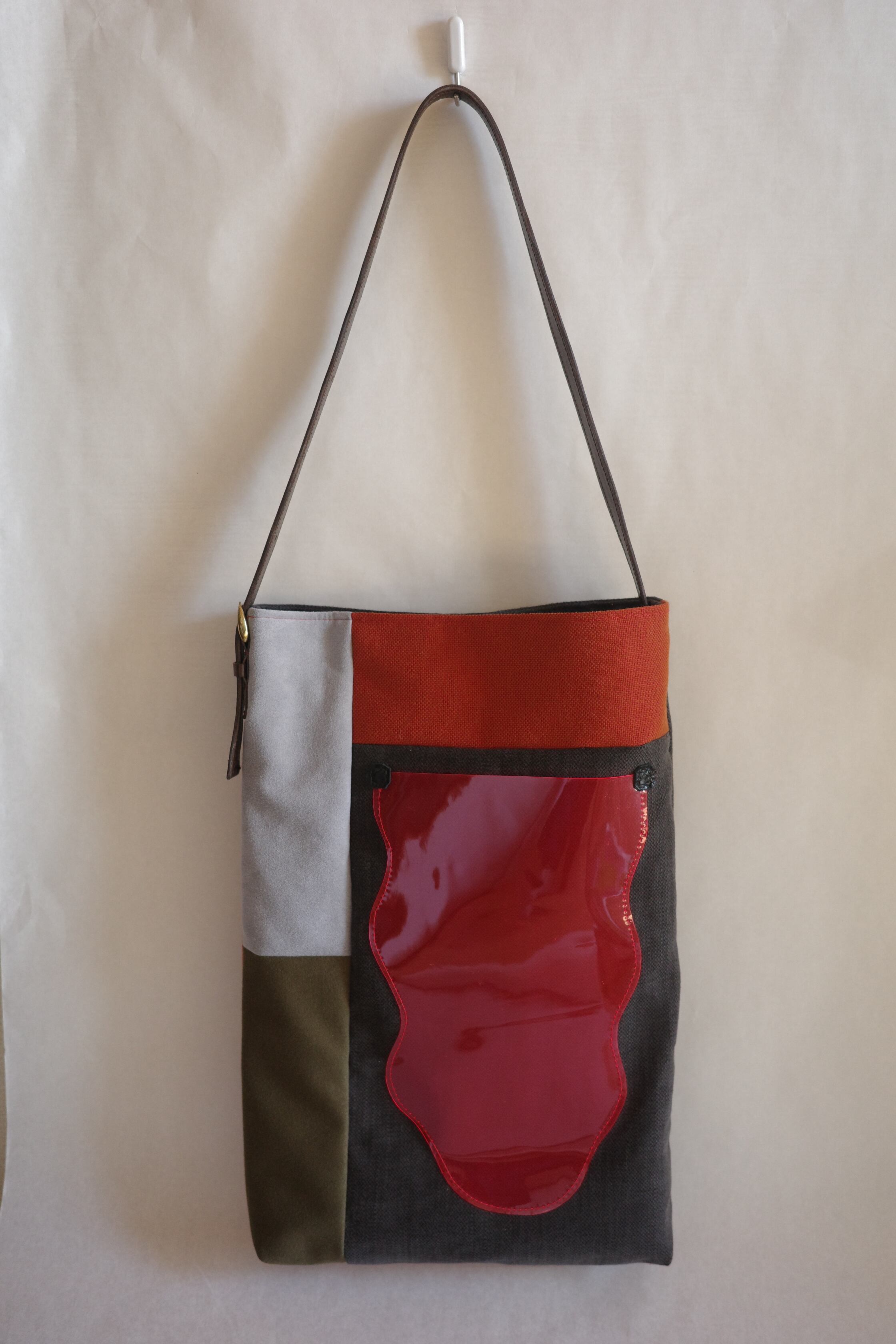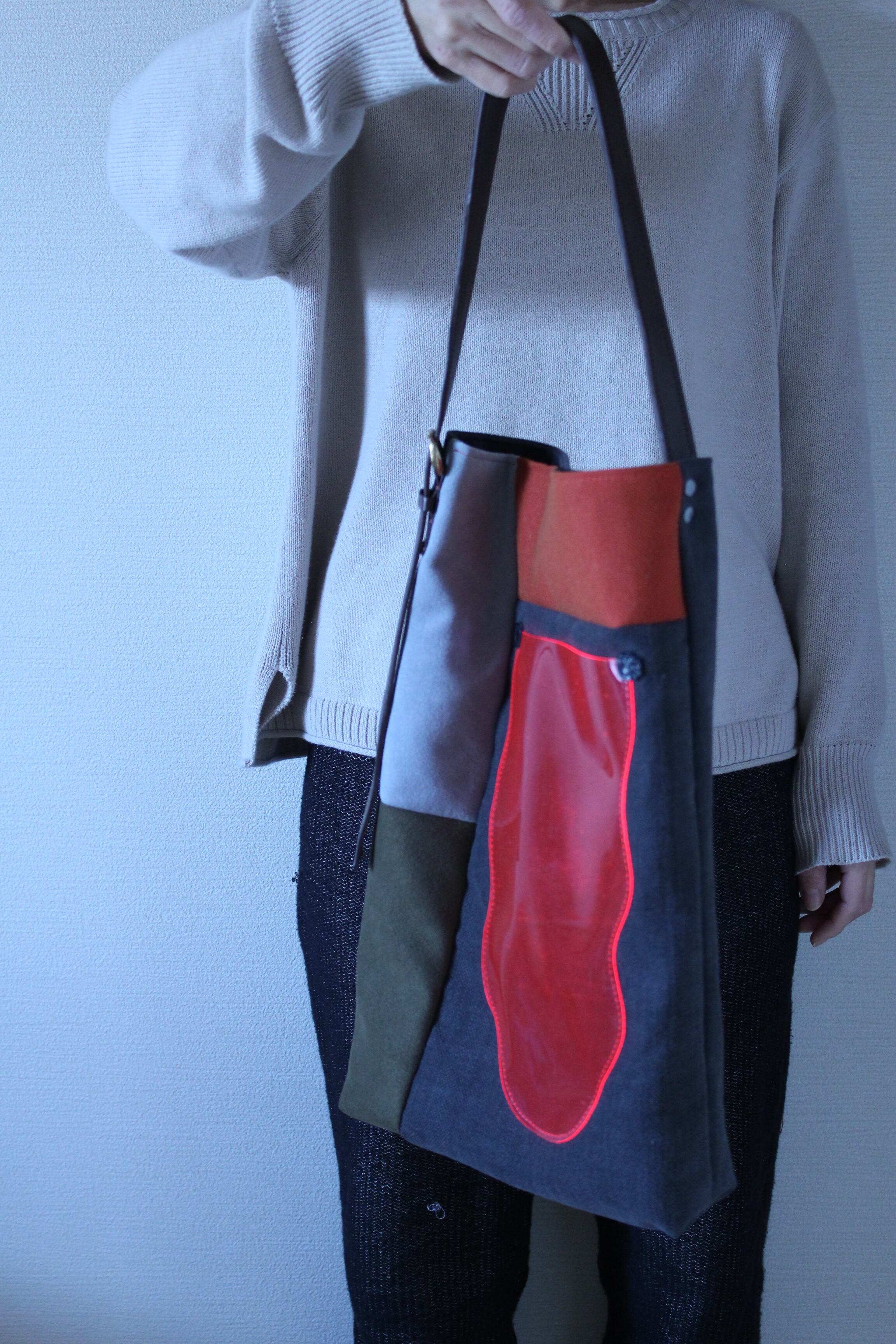 大きな赤いビニールポケットがインパクト大です。オレンジとチャコールの組み合わせがbauhausっぽい配色でお気に入りです。