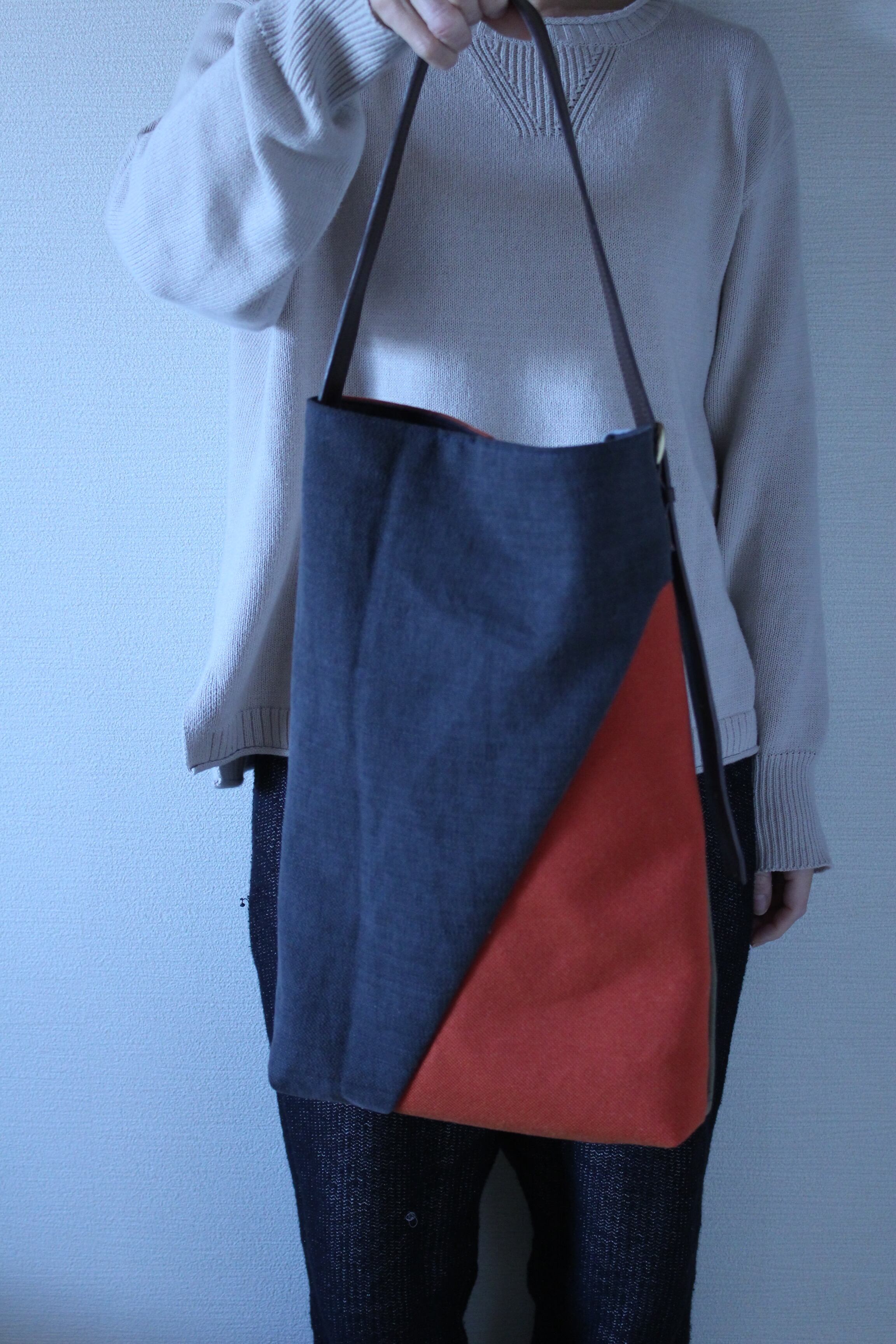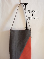 オレンジは張りのあるファブリック、チャコールは綿の優しい風合いのファブリック、ライトグレーとモスグリーンはスムースな感じです。異素材の組み合わせをお楽しみください。