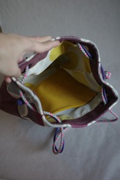 裏地には白地に黄色ドットのナイロンを使用。裏地の色が明るいと中身が見えやすいので便利です。