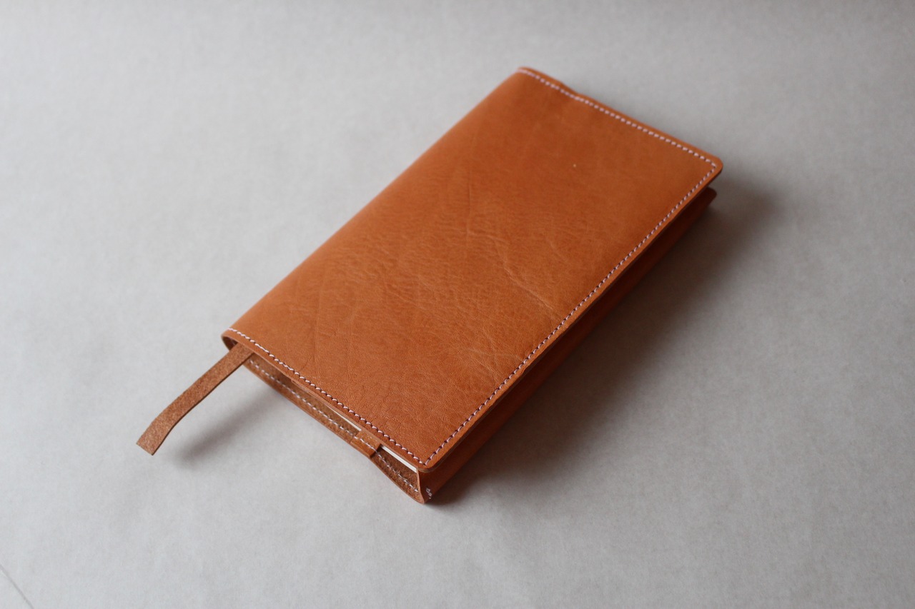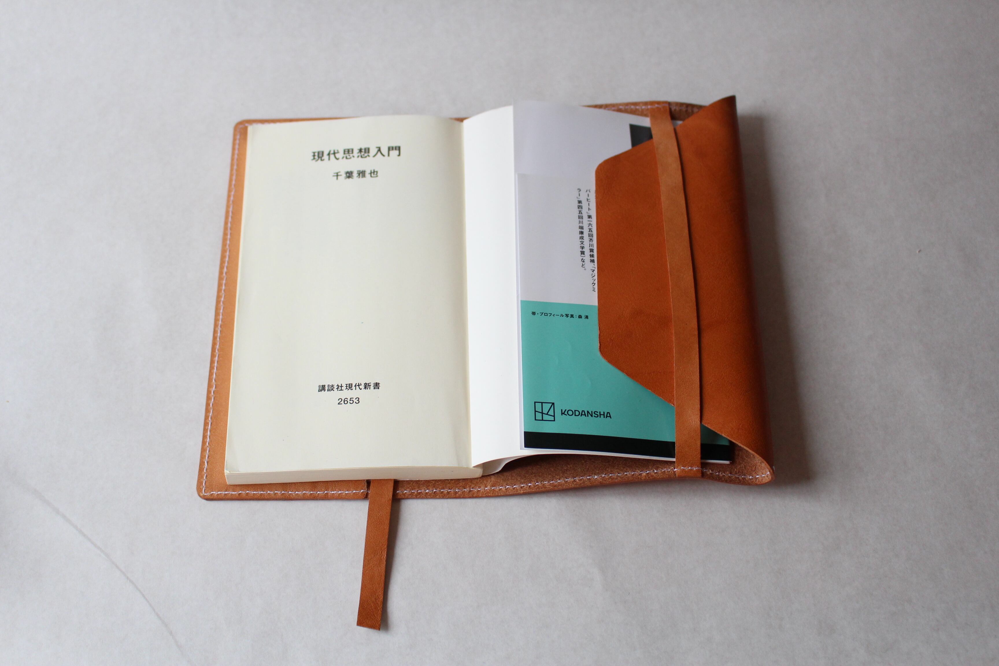 栃木レザーを贅沢に使った新書サイズのブックカバーです。