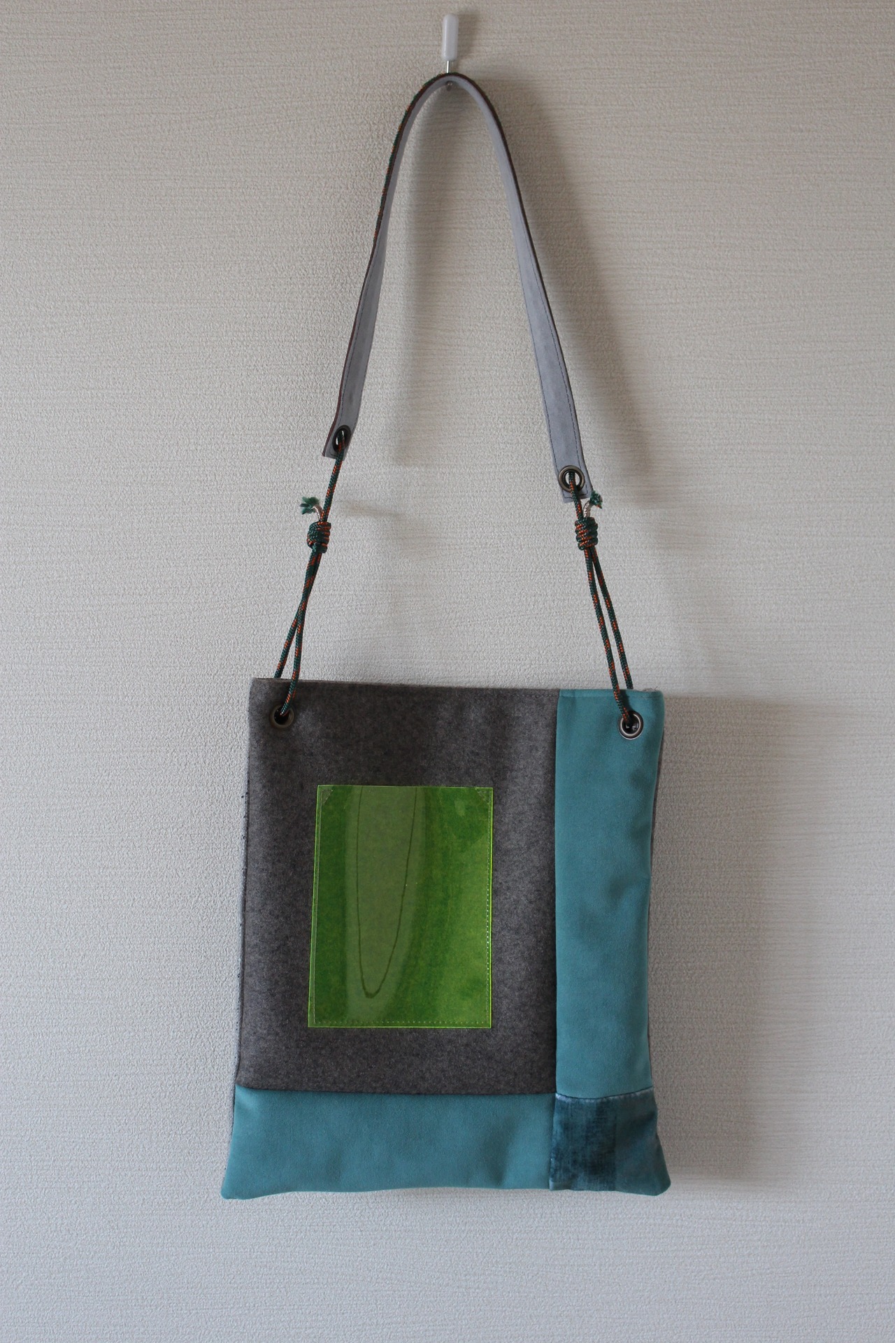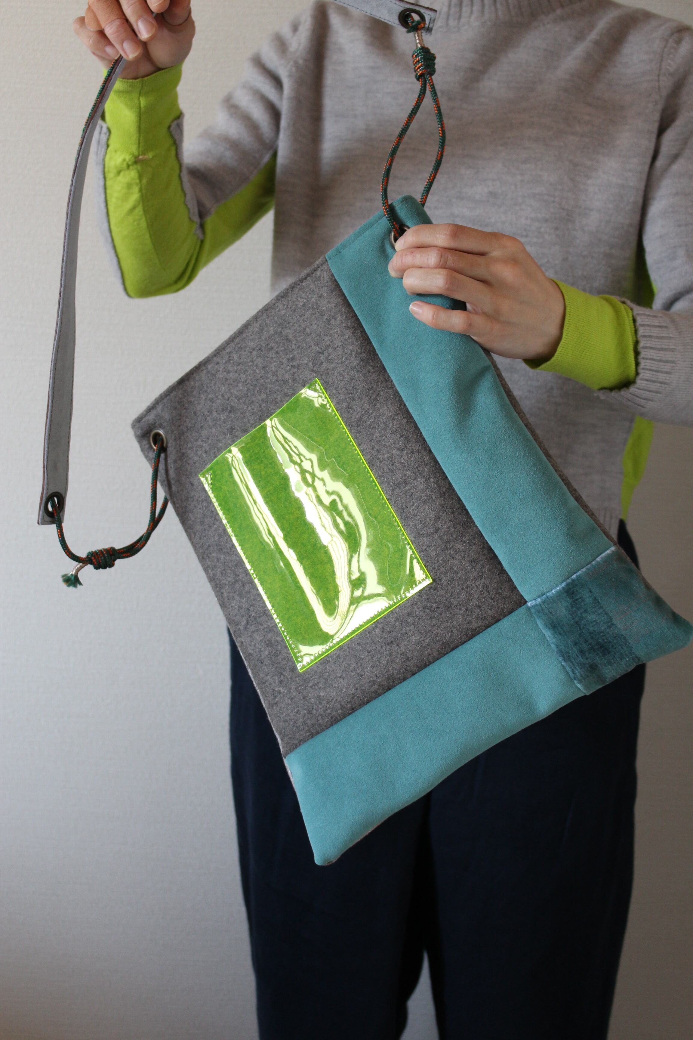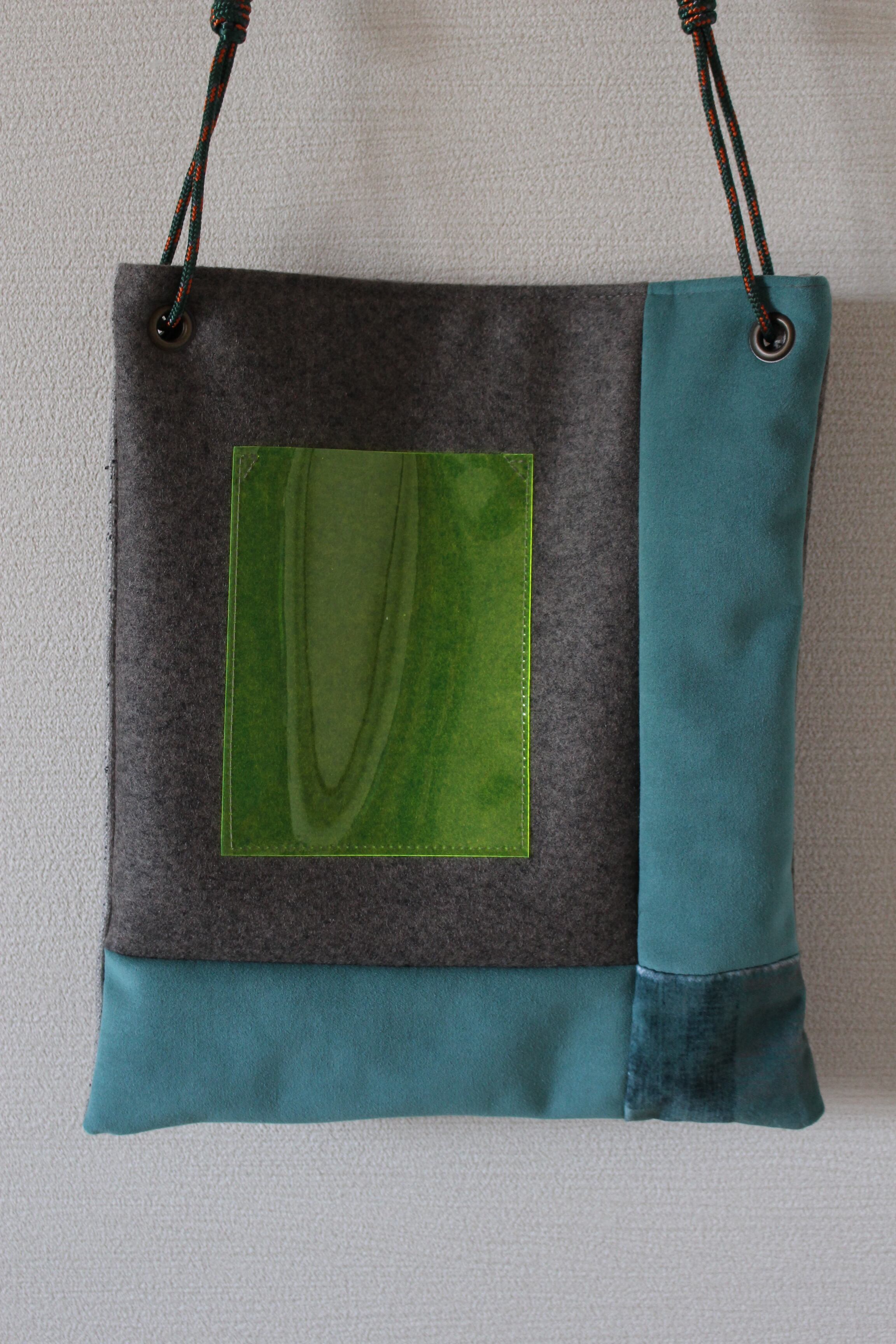 グレーのフェルト生地、ブルーのスエード調生地などを使って質感の違いが楽しめる組み合わせになっています。