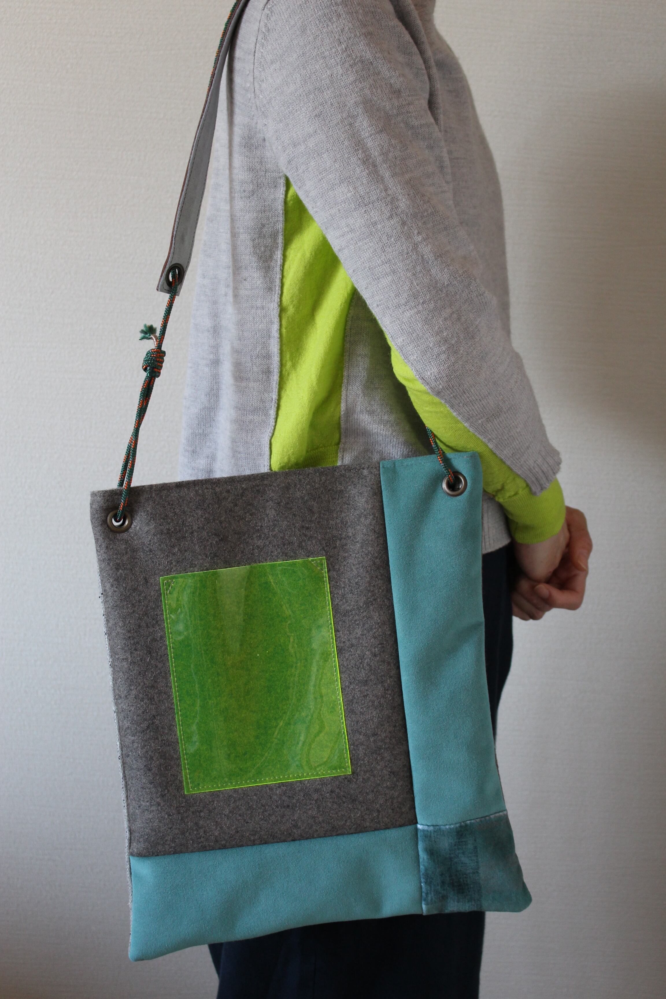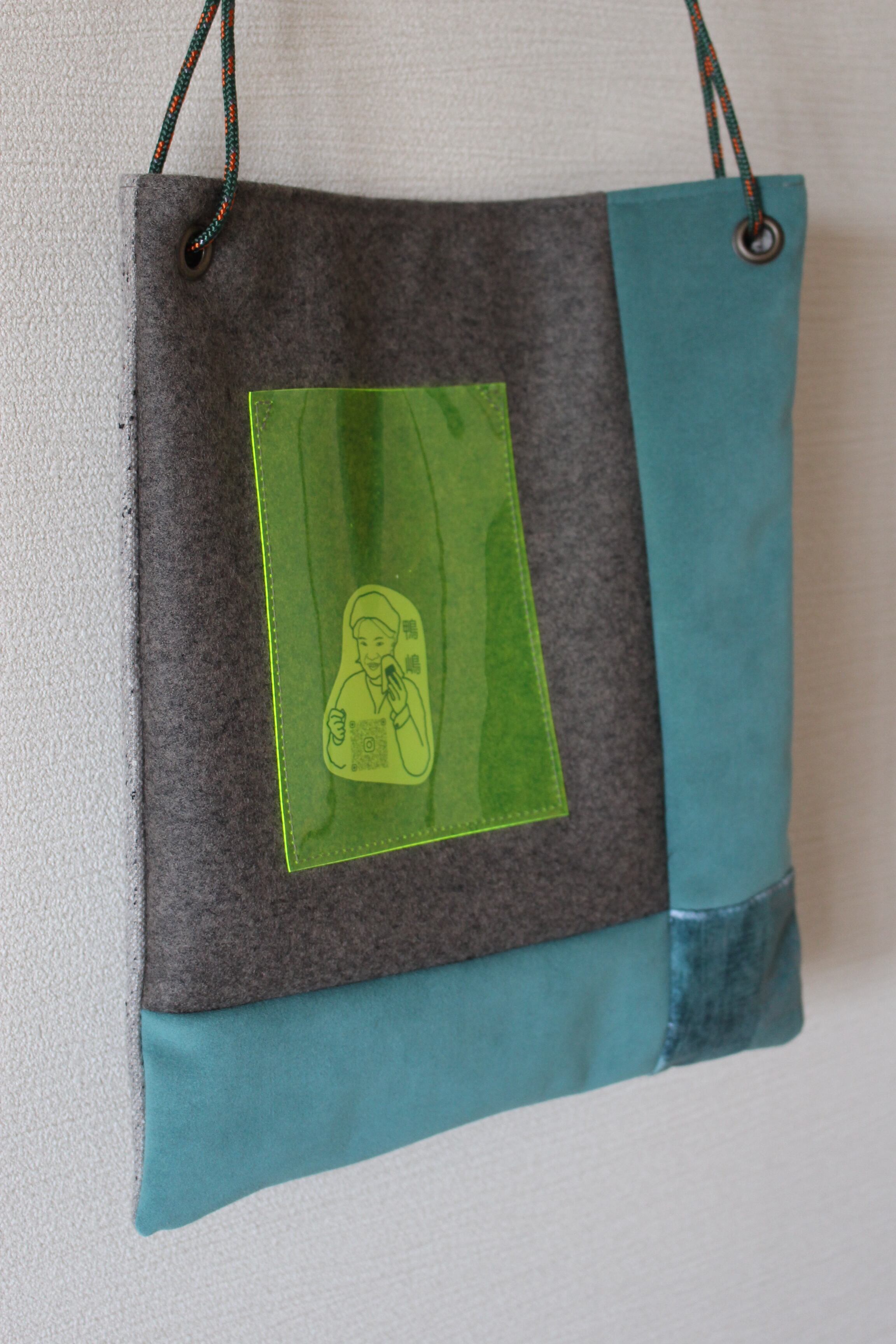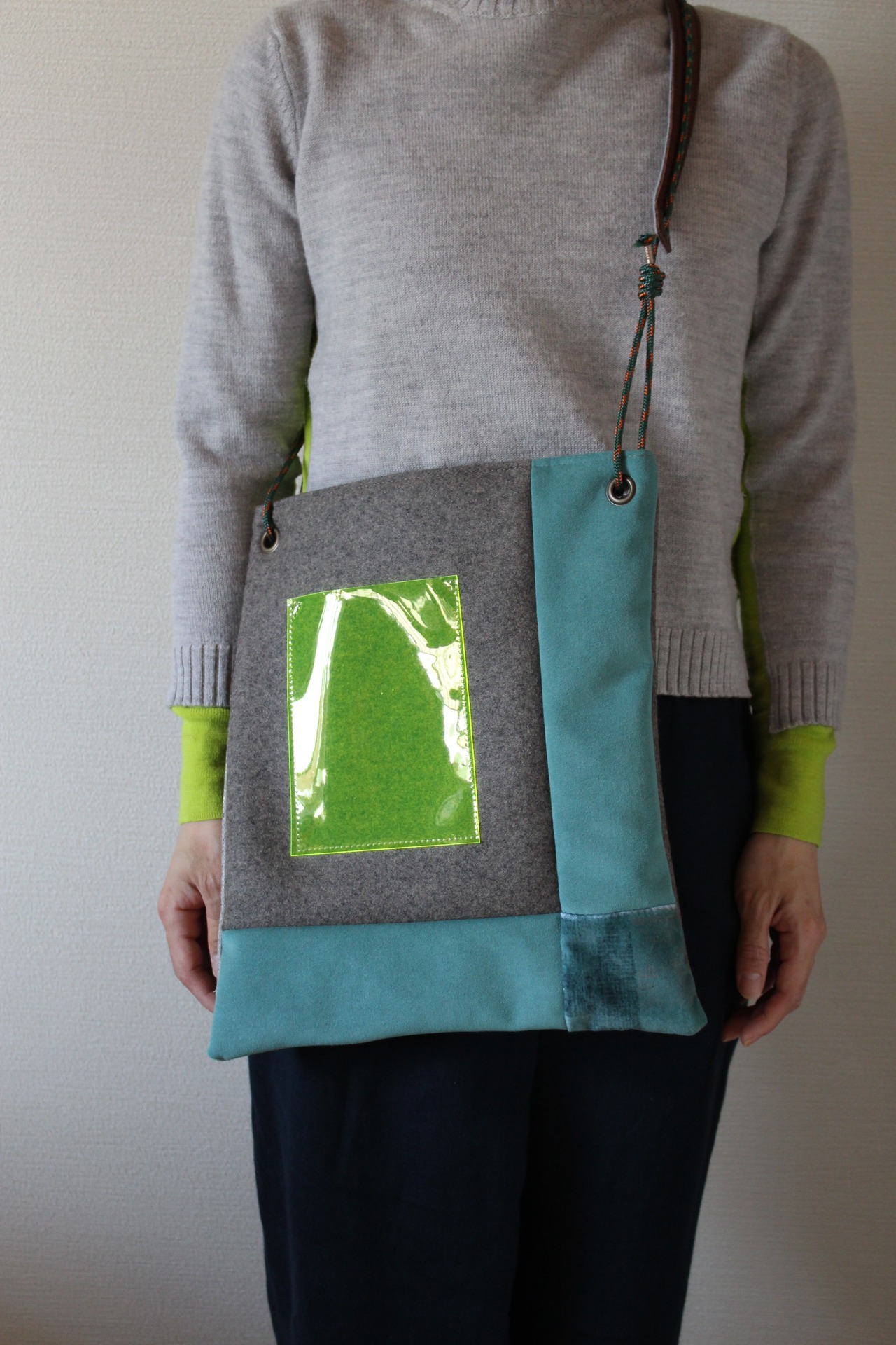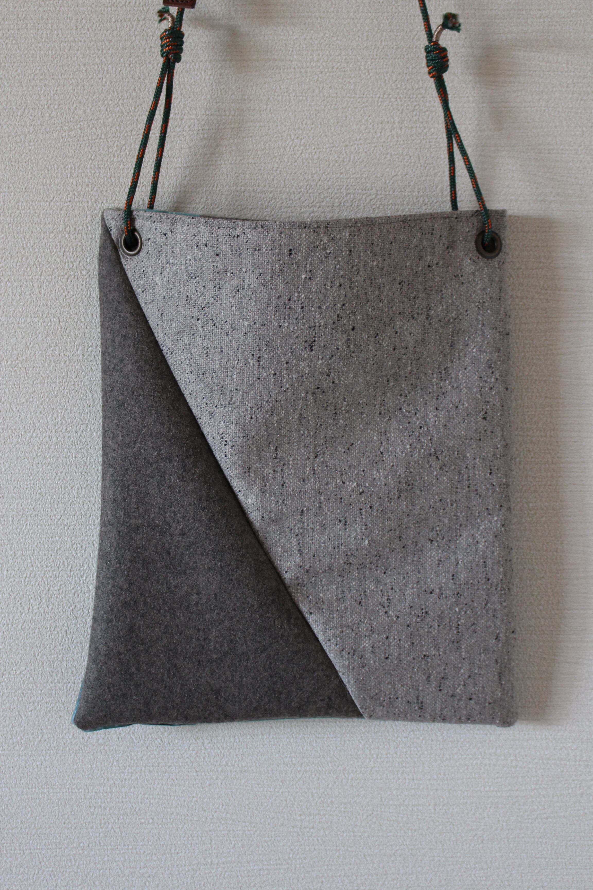グレーのフェルト生地、ブルーのスエード調生地などを使って質感の違いが楽しめる組み合わせになっています。