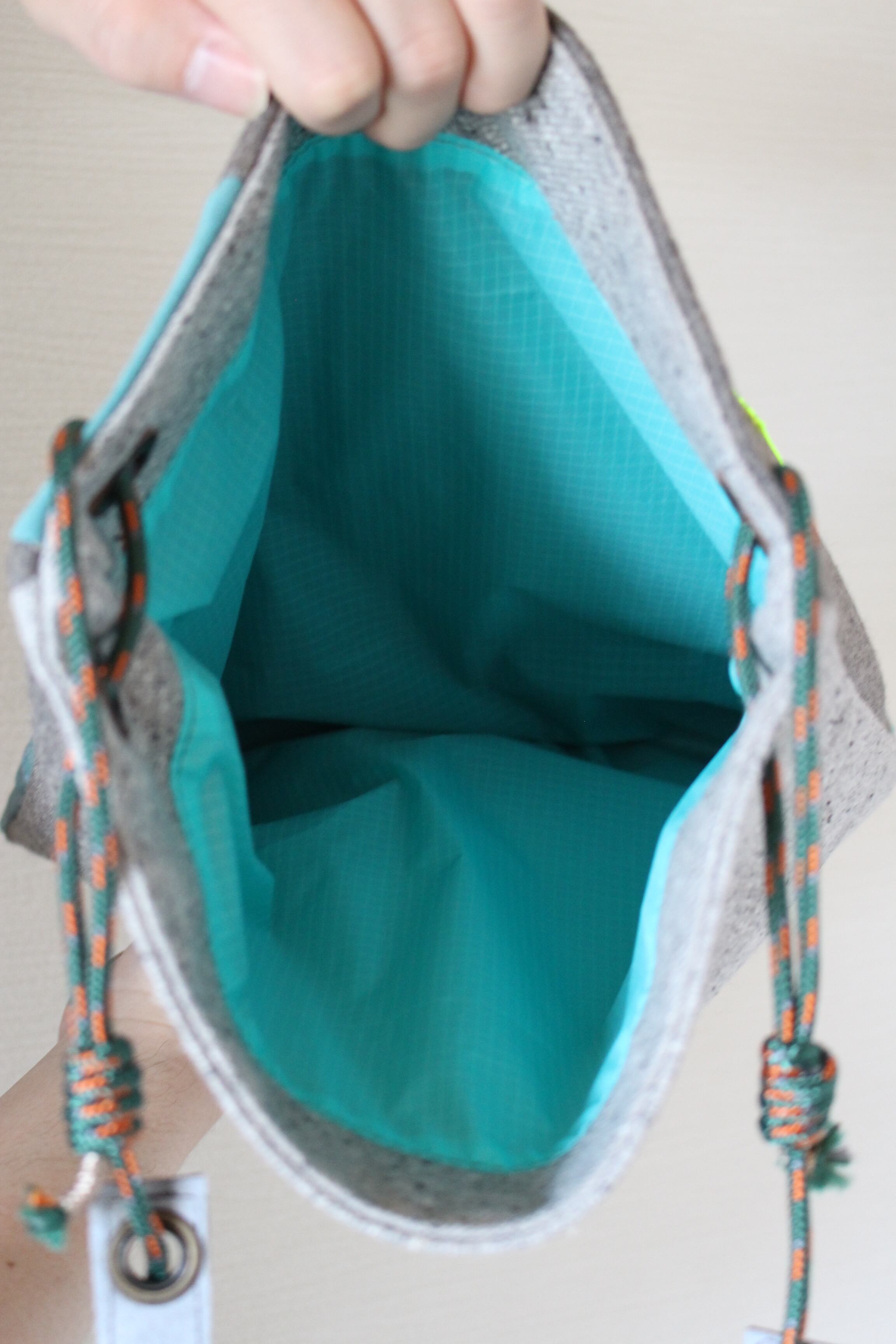 マチなしでスッキリ体に寄り添う感じとか、袋口にはファスナーもボタンもないので、開け閉めという概念がなく楽ちんな感じとか、気楽な使い勝手がお気に入りすぎて、自分の名前をサコッシュにつけてしまいました。